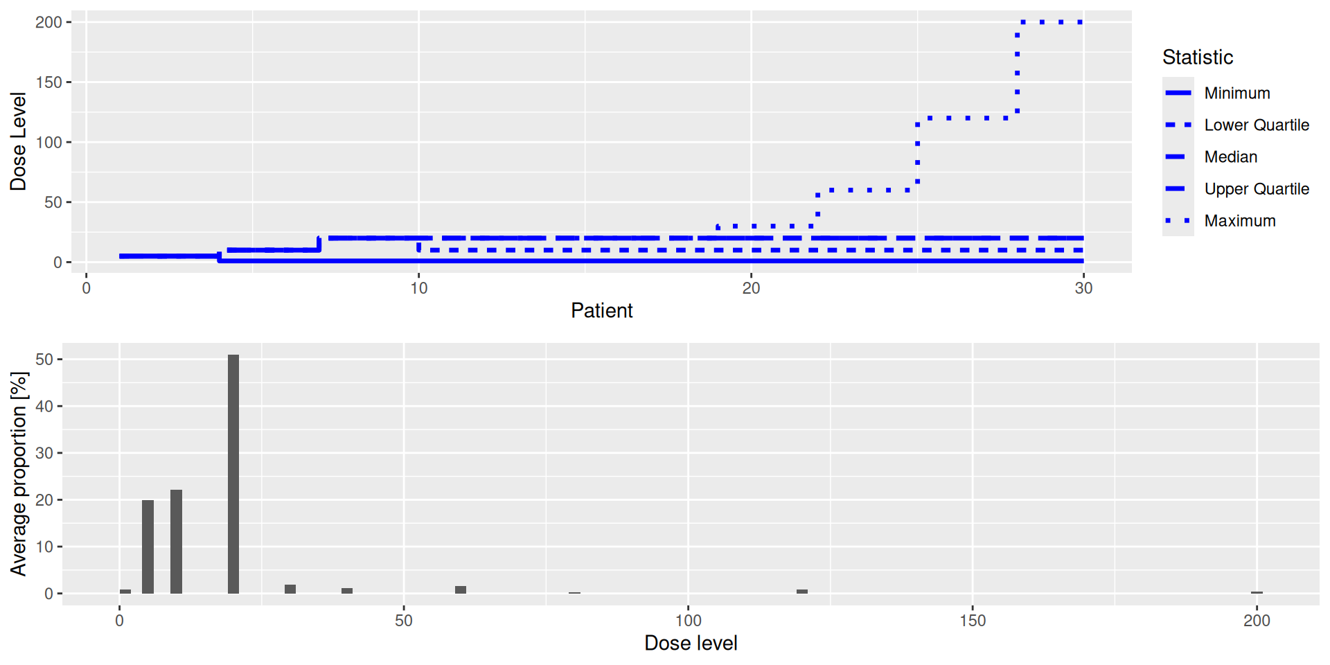 Here it is only 30, because we observed one DLT at dose 20, so the maximum allowed increment is 50%.